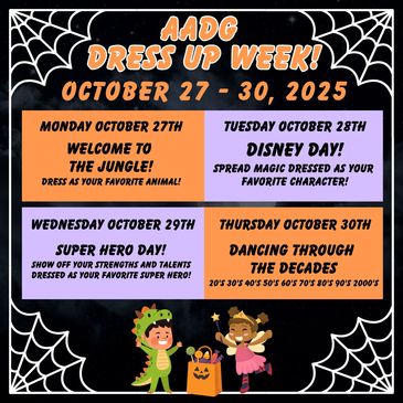 Spread some spooky fun, and come to class in your favorite themed costume! Each day has a fun theme to follow, or you can wear your Halloween costume of choice! We can't wait to see all your costumes.