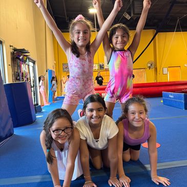 Our recreational Cheer class is a fun and energetic class that introduces students to the exciting world of cheer. We work on basic arm positions, jumps and tumbling skills. We focus on teamwork, Strength building and confidence. We also offer tumbling classes that focus on tumbling skills such as backhand springs and aerials.
